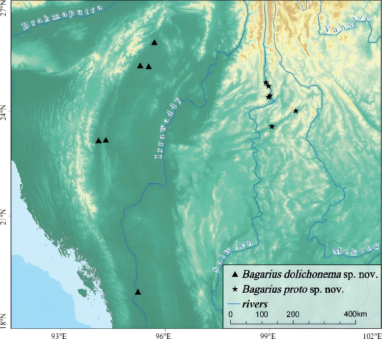 中国科学院昆明动物研究所东南亚野生动物多样性课题组研究人员整理了近20年在云南怒江(萨尔温江)水系与缅甸伊洛瓦底江水系采集的巨魾标本,经形态学、骨学与分子系统发育研究,揭示了这两个水系分布的巨魾均为新物种,并分别命名为原魾B. protossp. nov.与长丝魾B. dolichonemasp. nov.。