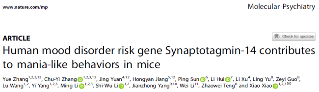 两项研究从遗传风险基因到行为表型,系统揭示了NEK4与SYT14在心境障碍发病中的新机制,不仅为疾病生物学基础提供新见解,也为开发靶向干预策略奠定了实验依据。上述研究工作依托“云南省动物模型与人类疾病机理重点实验室”开展,获得国家科技部、国家自然科学基金委、云南省科技厅和中国科学院等项目资助。