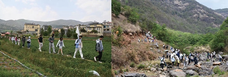 下午,同学们沿着丹桂村旁边的腰包箐山谷轻徒步,重走长征路,亲身体验红军长征路途的艰辛,大家在崎岖的山路间团结协作、共同前进,增进彼此交流;途中也结合动植物观察,欣赏自然风光,放松身心,感受生态与人文融合的乐趣。