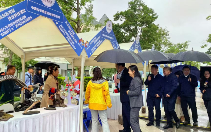 活动现场,昆明动物博物馆展示了世界第五种金丝猴——怒江金丝猴标本、具有回声定位能力的啮齿动物——中华猪尾鼠、拥有艳丽长尾羽的鸟类——白腹锦鸡、获得全国标本制作大赛精品奖的动态标本展示——家鸡搏斗标本,拥有绚丽光泽的欢乐女神闪蝶等展品在活动现场吸引了众多观众。现场工作人员向昆明市领导以及现场公众介绍了研究所的部分科研成果和科普工作成效。蝴蝶标本制作互动体验获得了众多中小学生的青睐。